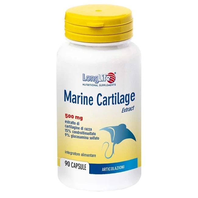 Integratore alimentare di cartilagine di razza titolato al 15% in condroitinsolfato e 9% in glucosamina solfato, utili per la funzionalità articolare.