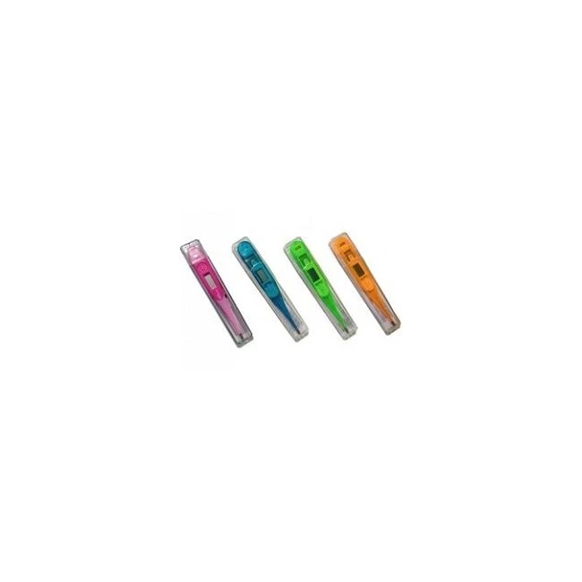 Dispositivo medico CE 0197 di classe IIa.Termometro digitale punta rigida, in 4 colori fluo: arancio, verde, azzurro e fuxia, con le seguenti caratteristiche: