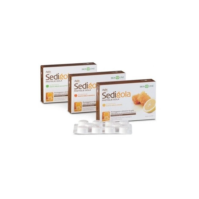 Formulato per proteggere ed idratare la mucosa orofaringea, alleviando la sensazione di dolore in caso di gola irritata, faringiti e tonsilliti. Contiene estratti di Propoli e Agrimonia che contribuiscono a formare un film mucoadesivo a protezione della mucosa irritata, mentre il Miele ha un effetto emolliente. L’estratto di Pompelmo e l’olio essenziale di Cannella conferiscono al prodotto un particolare effetto rinfrescante. Può essere usato anche come preventivo per chi è esposto a freddo, fumo, smog e polveri. Le pastiglie sono dolcificate con Miele ed edulcoranti di origine vegetale e sono disponibili in tre gradevoli gusti: Miele Limone, Miele Eucalipto e Miele Arancia.