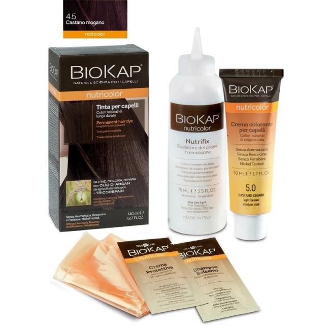 Dettagli Bios Line Biokap Nutricolor 4,5 Castano Mogano Tinta Tubo + Flacone