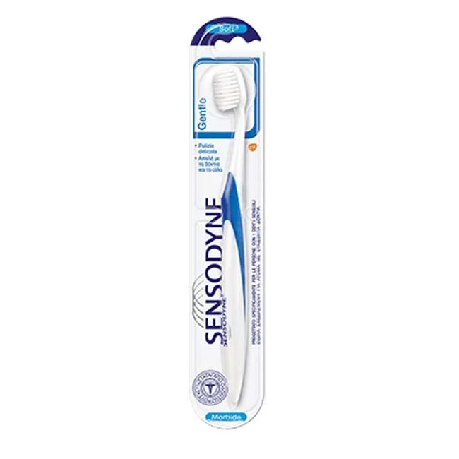 Il nuovo spazzolino Sensodyne Gentle, progettato per persone con denti sensibili, ha filamenti setosi per una delicata igiene di denti e gengive. Le setole composte da numerosi filamenti, fitti e sottili, puliscono i denti minimizzando il fastidio sul bordo gengivale che si avverte particolarmente in caso di sensibilità dentale. La testina piccola permette di pulire anche le aree della bocca più difficili da raggiungere.