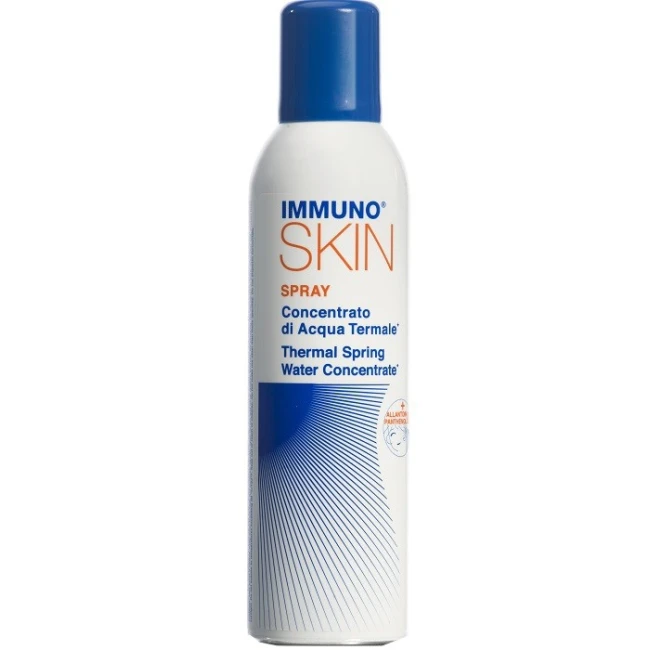 IMMUNO® Skin Spray è un concentrato di acqua termale della fonte “SALIES DE BÈARN” (Pirenei), ricco di minerali e componenti lenitivi. Una straordinaria composizione di Sali e Oligoelementi con un elevato contenuto di Ioni di Magnesio. Presenta un’intensa azione lenitiva, addolcente, idratante e rinfrescante sulla cute. Adatto per fissare il make up. Fornisce una piacevole sensazione di freschezza e di sollievo immediato. Ideale nei giorni più caldi. Ideale in caso di: eritema solare, orticaria, pelle irritata e/o arrossata, pelle atopica.