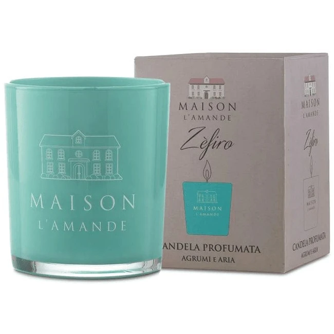 Candela profumata in vetro colorato. La profumazione ricorda la fresca brezza del mare con note di testa verdi ed agrumata dell’arancio dolce, del mandarino e delle foglie di limone armoniosamente fuse con un accordo acqua aria.