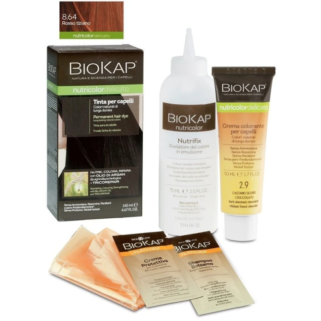 Dettagli Bios Line Biokap Nutricolor Delicato 8,64 Rosso Tiziano Tinta 140 Ml