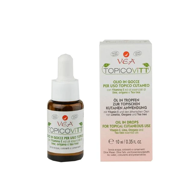 Olio innovativo in gocce per uso topico cutaneo costituito da vitamina E, antiossidante, e da una miscela brevettata di oli essenziali (lime, origano, tea tree) che favoriscono l’azione antimicrobica. Non contiene acqua e quindi non è soggetto ad inquinamento microbiologico. Mantiene in buono stato la cute, in ogni sede. Indicato nei casi di cute secca e arrossata. Su cute normale per prevenire arrossamenti da fattori esterni.