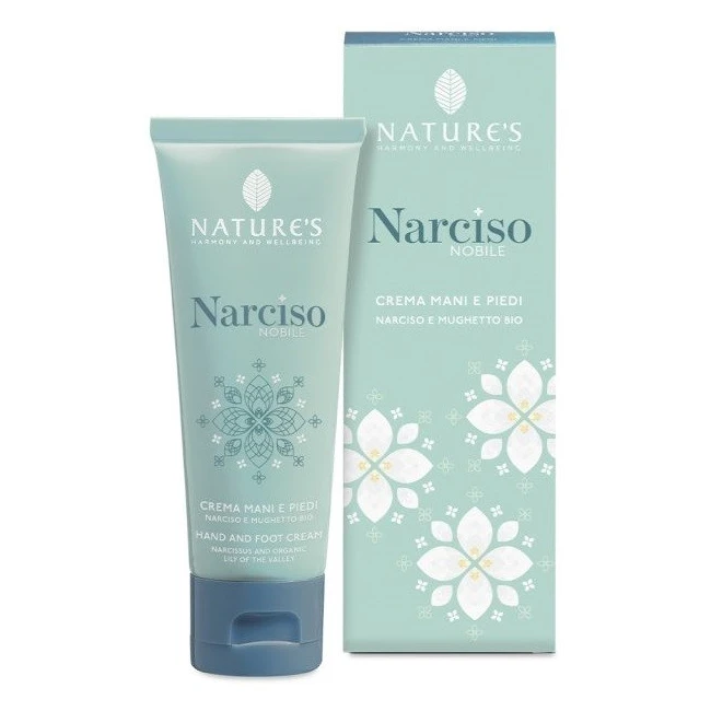 Ricca ma non grassa, la Crema Mani e Piedi Narciso Nobile protegge la pelle più esposta al rischio secchezza e disidratazione. Contiene attivi di origine naturale, che aiutano a ridurre la perdita d’acqua dall’epidermide e betaina, ricavata dalle barbabietole, che stimola il turnover cellulare, contrastando l’ispessimento dello strato corneo. È arricchita con burro di Karité bio e Vitamina E, che apportano morbidezza, protezione ed elasticità, mentre l’estratto di fiori di Narciso e l’estratto di foglie di Mughetto bio svolgono effetti tonificanti ed energizzanti. Una miscela di sostanze vegetali contribuisce a prolungare l’azione idratante e nutriente. La sensazione di comfort è intensificata dalla delicata profumazione della linea.