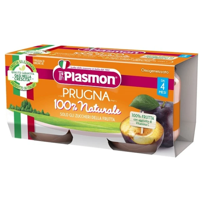 Prodotto omogeneizzato a base di prugna. Prodotto indicato a partire dal 4° mese compiuto, salvo diverso parere del pediatra.