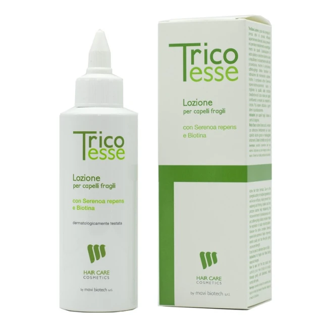 Tricoesse Lozione, grazie alla sinergia di principi attivi bilanciati, aiuta a prevenire il prematuro indebolimento e assottigliamento dei capelli. L'associazione di acido azelaico e piroctone olamina aiuta a riequilibrare il microambiente dell'unità pilosebacea, mentre il complesso caffeina-ginkgo biloba favorisce la riattivazione del microcircolo cutaneo. Inoltre, il complesso attivo Serenoa repens-biotina-pantenolo aiuta a migliorare la qualità delle strutture cheratiniche ed il ciclo vitale dei capelli, contribuendo a renderli più resistenti e corposi. Può essere utilizzata a giorni alterni o quotidianamente.
