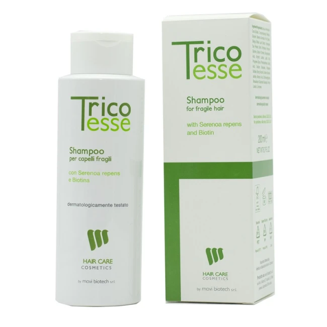 Tricoesse Shampoo deterge delicatamente, aiutando a ristabilire il corretto equilibrio del film idrolipidico del cuoio capelluto e dei capelli. Inoltre, la presenza del complesso attivo Serenoa repens-biotina-pantenolo aiuta a migliorare la qualità delle strutture cheratiniche e il ciclo vitale dei capelli, contribuendo a renderli più resistenti e corposi. Particolarmente consigliato per lavaggi frequenti, anche quotidiani.