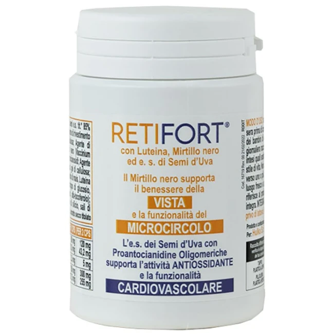 Integratore alimentare a base di estratti vegetali (luteina, Mirtillo nero, estratto secco di semi di Uva con proantocianidine oligomeriche) con azione antiossidante, supporta la funzionalità del microcircolo, contribuisce al benessere della vista, supporta la regolare funzionalità cardiovascolare
