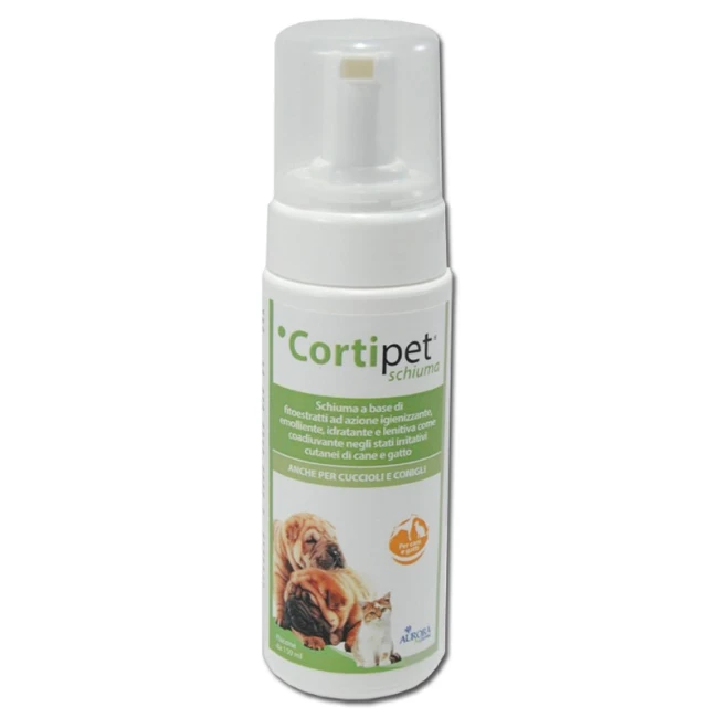 Cortipet schiuma è un prodotto dermatologico a base di fitoestratti ad azione emolliente, idratante e lenitiva. Favorisce il mantenimento delle condizioni fisiologiche della cute di cani e gatti.