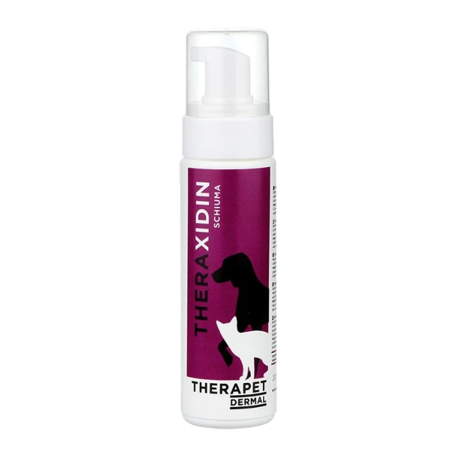 Schiuma ad uso cutaneo per cani e gatti con clorexidina utile per l’igiene profonda del manto.