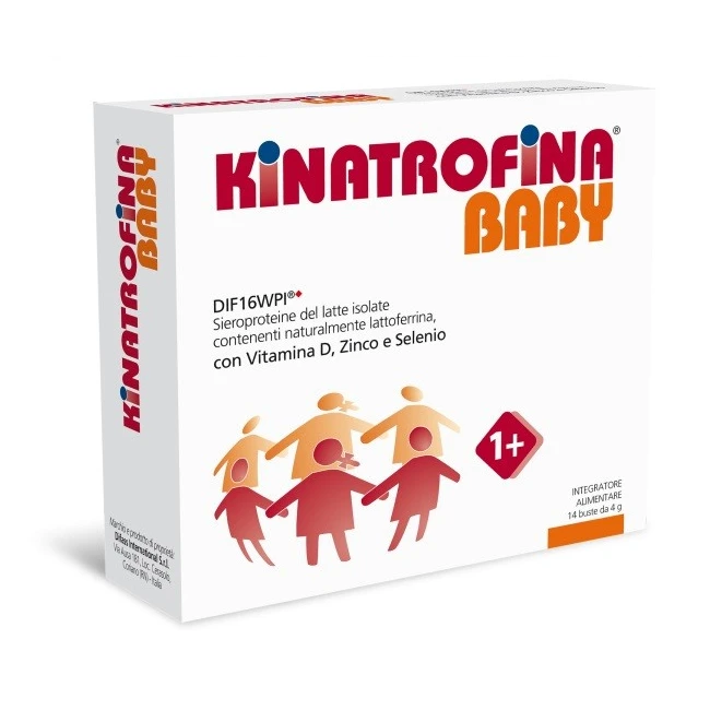 Integratore alimentare a base di DIF16WPI (sieroproteine del latte isolate), con vitamina D, zinco e selenio; in virtù dei componenti presenti, Kinatrofina Baby può essere favorevolmente utilizzato durante i cambi di stagione. Il prodotto è indicato nei casi di ridotto apporto con la dieta o di aumentato fabbisogno dei nutrienti. La vitamina D contribuisce alla normale funzione del sistema immunitario dei bambini; inoltre la vitamina D e le proteine sono necessarie per la normale crescita e lo sviluppo delle ossa nei bambini. Kinatrofina Baby contiene proteine ad alto valore biologico.