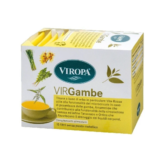 Tisana a base di erbe in particolare vite rossa, utile alla funzionalità del microcircolo in caso di pesantezza delle gambe, amamelide che contribuisce alla funzionalità della circolazione venosa ed infine tarassaco e ortica che favoriscono il drenaggio dei liquidi corporei.