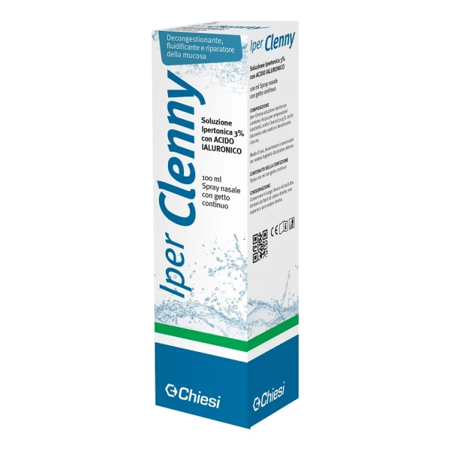 Iper Clenny è uno spray nasale a getto continuo che combina una soluzione ipertonica al 3% con acido ialuronico per offrire un’azione efficace decongestionante della mucosa nasale. È indicato nel trattamento del raffreddore comune, delle riniti acute, infettive o allergiche, e delle rinosinusiti, ed è pensato per l’uso sia negli adulti che nei bambini, specialmente durante le fasi acute delle patologie nasali.