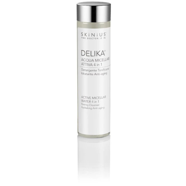 Deterge, tonifica, lenisce e svolge azione anti-aging lasciando l’epidermide idratata, tonica, elastica, compatta e luminosa. Rimuove il trucco e le impurità donando una piacevole sensazione di freschezza. Studiata per le pelli più delicate e sensibili, ideale anche in caso di pelle mista e pori dilatati. DELIKA contiene Fospidina, un complesso formato da fosfolipidi estratti dalla soia e glucosamina. La loro azione sinergica ha dimostrato un’importante azione rigenerante sui tessuti cutanei in quanto, l'attività della glucosamina, precursore dell’acido ialuronico, risulta efficace grazie alla veicolazione operata dai fosfolipidi che penetrano fino al derma.