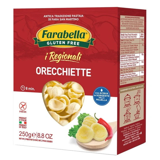 Orecchiette Pasta stabilizzata senza glutine, specificamente formulata per celiaci.