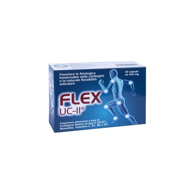 Integratore alimentare a base di Collagene Nativo di tipo II (UC-II), Boswellia, Vitamina C, B1, B6 e D3.La particolare formulazione e la speciale miscelazione dei componenti determinano la massima efficacia dei componenti, favorendo in modo naturale la fisiologica funzionalità delle cartilagini, la naturale flessibilità e mobilità articolare, la formazione del collagene di tipo II e l'azione antiflogistica, analgesica, antireumatica ed il trofismo articolare.