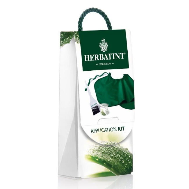 Il Kit di applicazione di Herbatint è ideato per offrire gli strumenti necessari per la tua colorazione: un misurino, un pennello per applicare il colore, una mantellina di protezione. Tutti gli elementi del Kit sono riutilizzabili, limitando l’impatto ambientale. I kit sono contenuti in un’unità logistica di 4 unità ideata per essere utilizzata anche come un mini display sul punto vendita. La larghezza del kit è la medesima della confezione di Herbatint: questo rende agevole l’esposizione del prodotto, offrendo una totale flessibilità sul punto vendita.