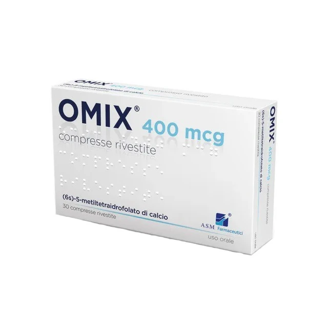 OMIX 400 è un complemento nutrizionale costituito da una formulazione polivitaminica che comprende l'intera gamma delle vitamine B, in concentrazioni tra loro bilanciate e in associazione con trimetilglicina, SOD, Zinco e Acido folico [(6S)-5-Metiltetraidrofolato].