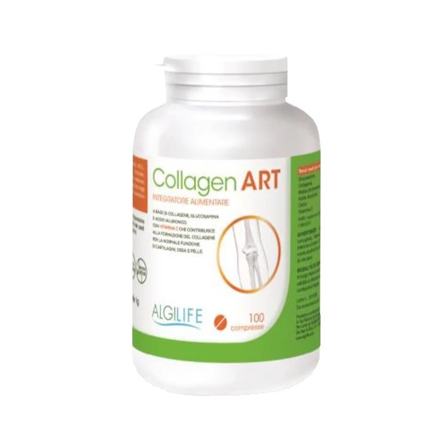 Integratore alimentare a base di glucosamina solfato, acido ialuronico, MSM, collagene e vitamina C. Collagen Art contribuisce alla elasticità della cartilagine e ne inibisce la degradazione. Di supporto alla formazione del collagene per la funzione di ossa e pelle.