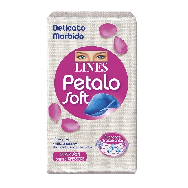 Lines Petalo Soft, gli assorbenti sottili più soffici e morbidi che offrono un contatto extra morbido sulla pelle, con uno spessore in più rispetto agli assorbenti Lines Petalo ultrasottili.