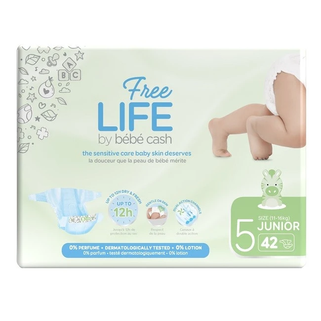 Ontex Freelife By Bebecash Pannolini Junior Taglia 5 11-25 Kg Girovita 41-62 Cm 42 Pezzi