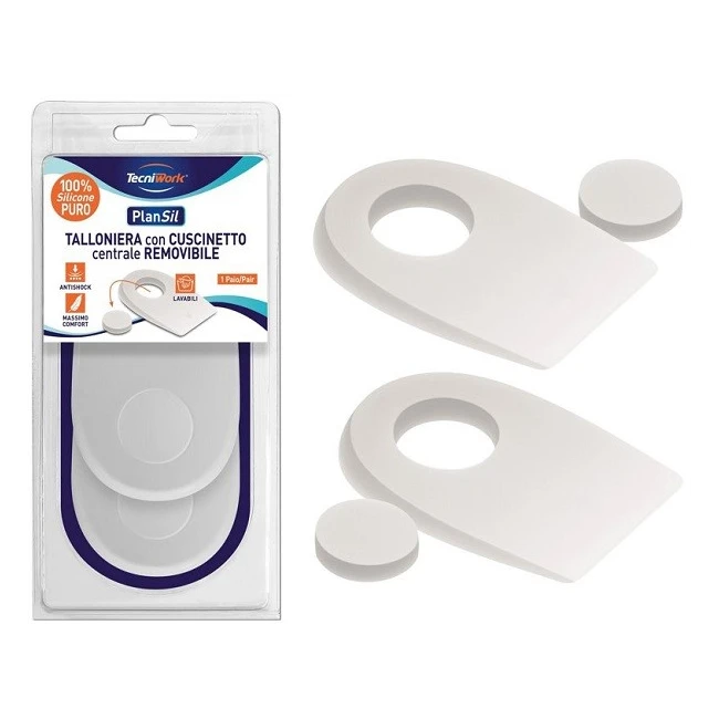 Talloniere in silicone con cuscinetto centrale removibile. Riducono i carichi a livello del tallone e grazie alla possibilità di estrarre il cuscinetto, sono adatte ad ogni esigenza.