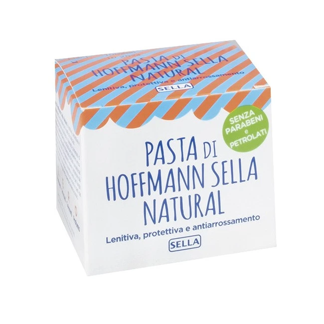 La Pasta di Hoffmann Sella Natural è lenitiva, protettiva e antiarrossamento, ed è ideale per le pelli più delicate. Per la sua composizione equilibrata e l'elevato contenuto di oli di oliva e ossido di zinco, è indicata per prevenire arrossamenti e irritazioni della pelle di bambini e adulti causate dal contatto con urine e feci, che possono essere trattenute dal pannolino. Ideale per le persone costrette a letto per lunghi periodi (decubito). Consigliata anche per lenire le parti del corpo soggette a sfregamento (esempio: interno cosce). Senza parabeni, petrolati, coloranti e siliconi.
