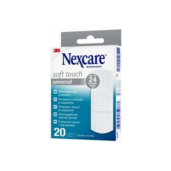 Nexcare Universal Soft Touch Plasters sono morbidi e confortevoli. Realizzati in materiale delicato e traspirante con una buona adesione sulla pelle. Proteggono le piccole ferite dalla contaminazione. Il tampone non si attacca alle ferite, per una facile rimozione. Possono essere tagliati alla dimensione desiderata. Privi di lattice di gomma naturale.