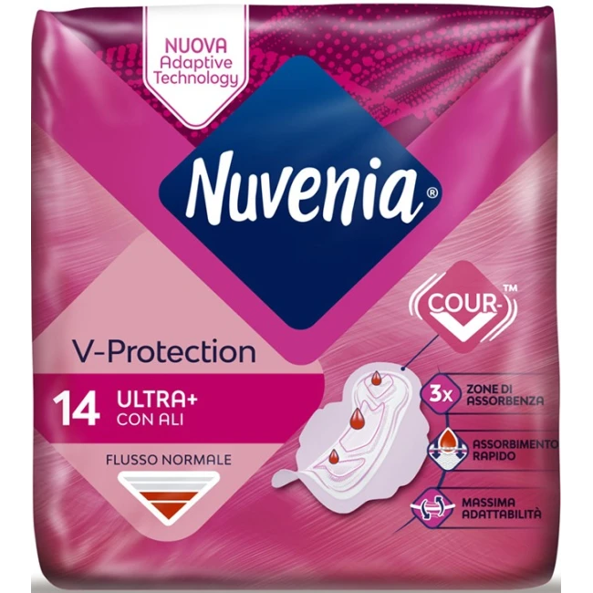 Nuvenia Ultra con ali è un assorbente. AirTech® dal design SecureFit® modella il prodotto perfettamente sul corpo. È indicato per donne con flusso mestruale normale.