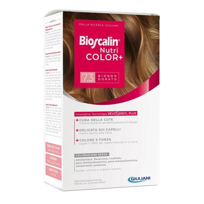 Giuliani Bioscalin Nutricolor Plus 7,3 Biondo Dorato Crema Colorante 40 Ml + Rivelatore Crema 60 Ml + Shampoo 12 Ml + Trattament