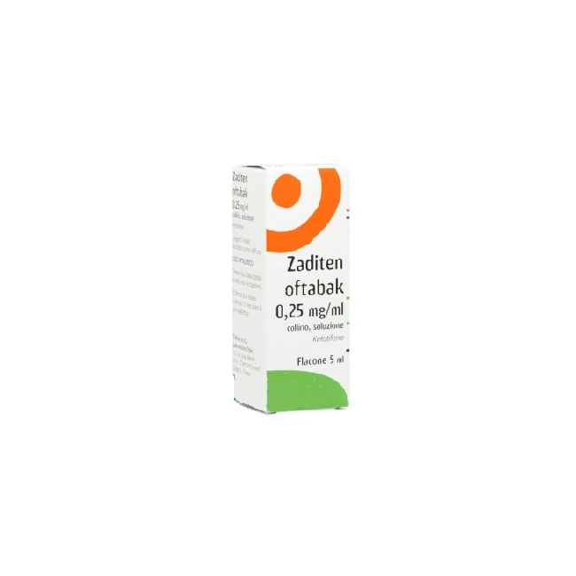Zaditen Oftabak 0,25 mg/ml è un collirio antiallergico senza conservanti, indicato nel trattamento della congiuntivite allergica stagionale in adulti e bambini dai 3 anni in su con ketotifene che agisce alleviando sintomi come prurito oculare, arrossamento, gonfiore e lacrimazione eccessiva.