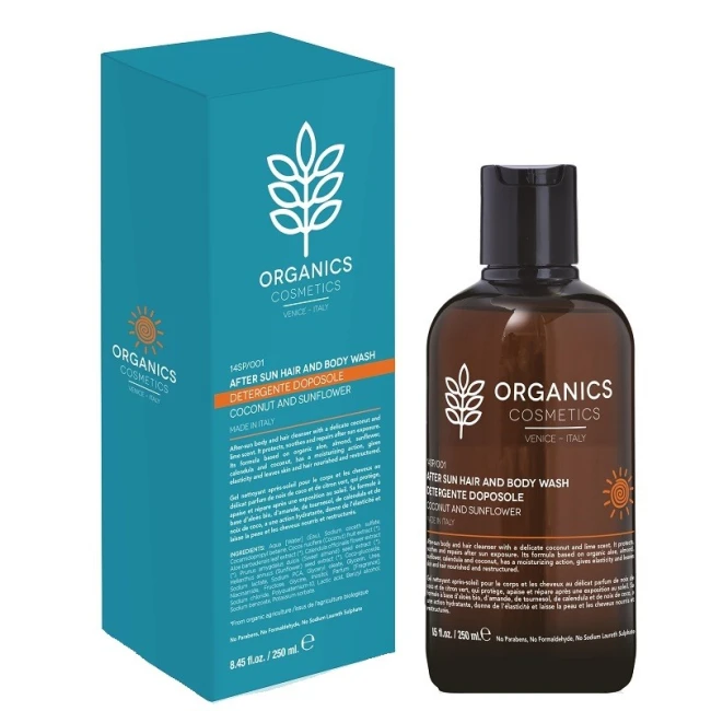 Detergente doposole corpo e capelli al delicato profumo di cocco e lime, che protegge, lenisce e ripara dopo l'esposizione al sole. La sua formula a base di aloe, mandorla, girasole, calendula e cocco organici, svolge un'azione idratante, dona elasticità e lascia pelle e capelli nutriti e ristrutturati.