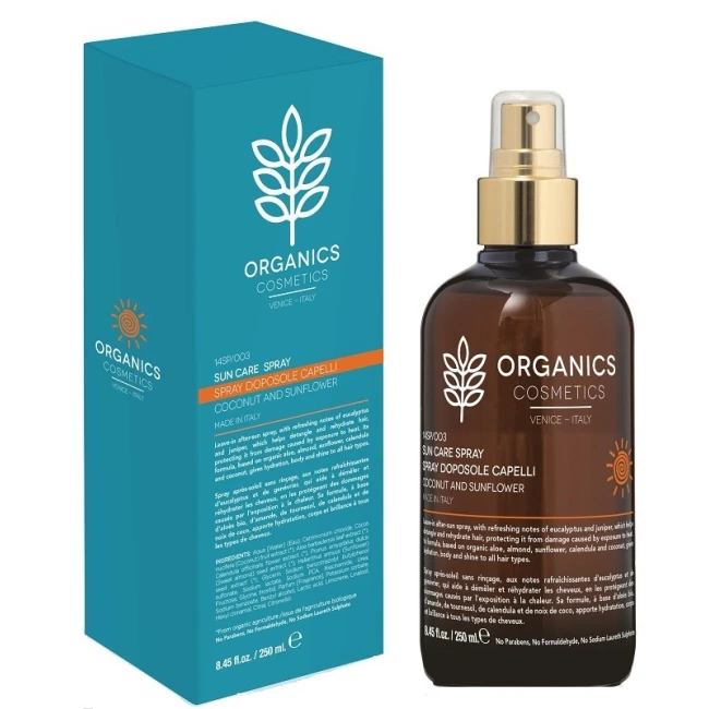 Spray doposole senza risciacquo, con note rinfrescanti di eucalipto e ginepro, che aiuta a districare e reidratare i capelli, proteggendoli dai danni causati dall'esposizione al calore. La sua formula, a basa di aloe, mandorla, girasole, calendula e cocco organici, dona idratazione, corpo e lucentezza ad ogni tipo di capello.