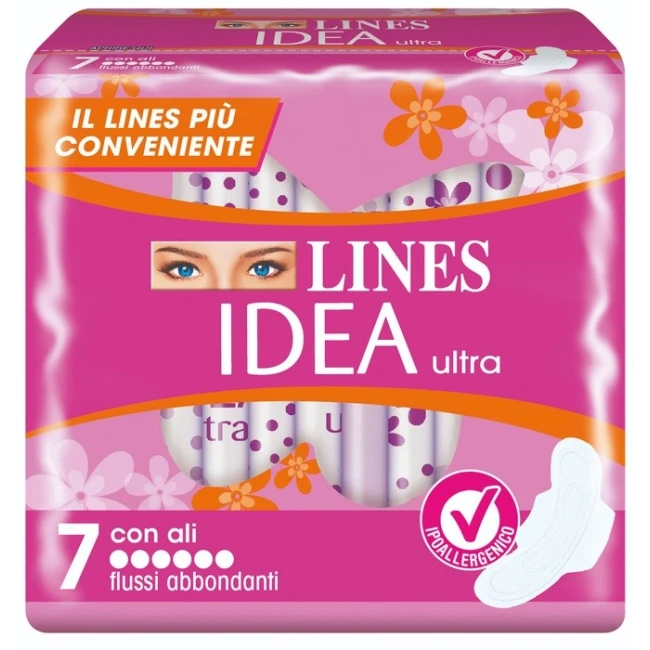 Gli assorbenti Lines Idea offrono la protezione e il comfort lines e si prendono cura della pelle offrendo un'ottima sensazione di morbidezza.