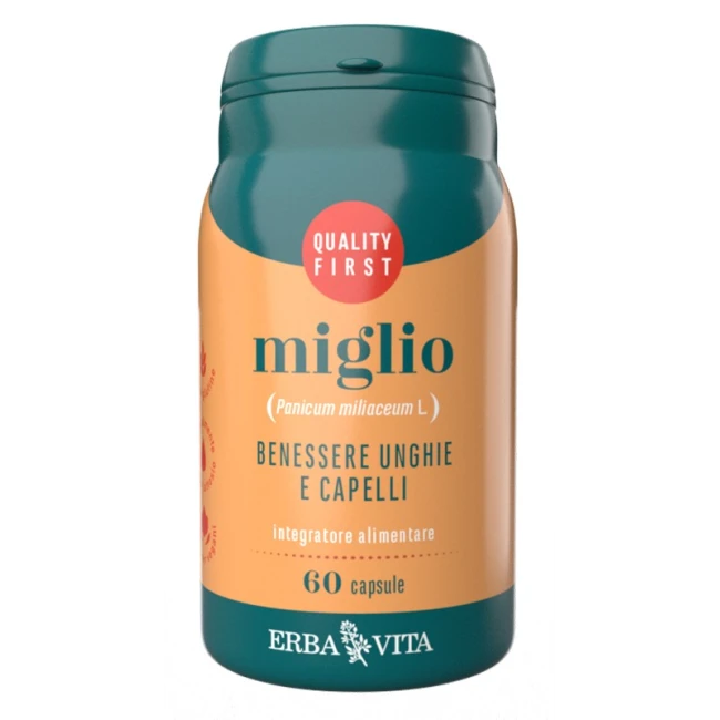 Integratore alimentare. Il miglio è utile per favorire il fisiologico trofismo degli annessi cutanei (unghie e capelli); svolge, inoltre, un’azione di sostegno e ricostituente.