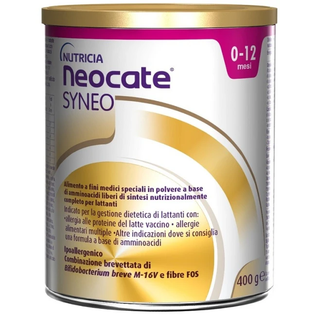 Alimento a fini medici speciali in polvere a base di amminoacidi di sintesi specificatamente indicato per la gestione dietetica dell'allergia alle proteine del latte vaccino, allergie alimentari multiple e altre indicazioni in cui è raccomandata una formula a base di amminoacidi. È inoltre integrato con Syneo, la combinazione brevettata di Bifidobacterium breve M-16V e fibre scFOS e lcFOS.