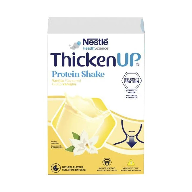 DescrizioneAlimento a fini medici speciali, indicato per la gestione dietetica di pazienti con disfagia (difficoltà di deglutizione) e fabbisogno proteico elevato. ThickenUP Protein Shake è una formulazione in polvere addensante resistente all'amilasi, iperproteica a base di 100% sieroproteine. Ha un gradevole gusto vaniglia. Migliora la sicurezza e l’efficacia della deglutizione grazie alla presenza della gomma di xanthan.