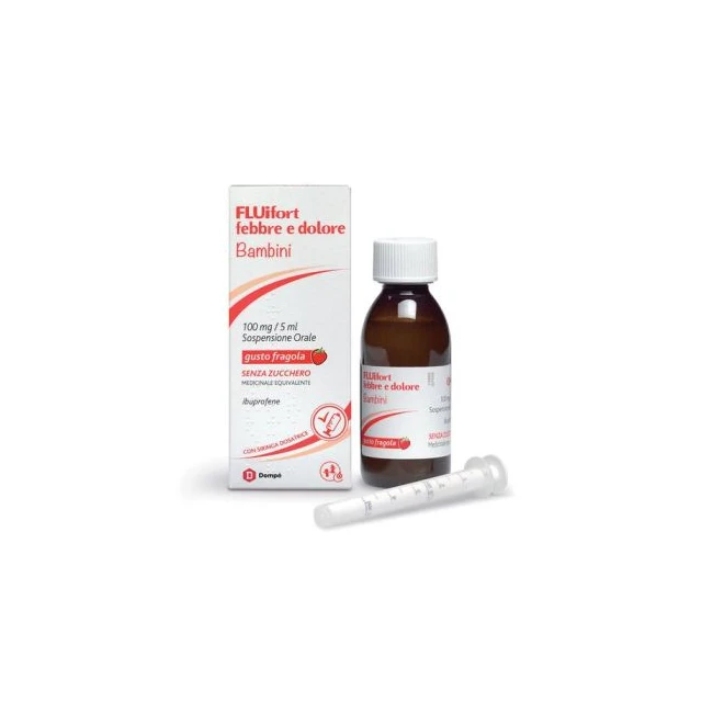 Dettagli Fluifort Febbre e Dolore Bambini 100mg/5ml Sospensione orale senza zucchero bambini per la febbre 150 ml