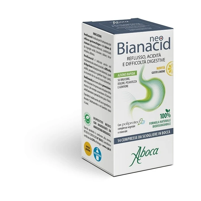 NeoBianacid è indicato per il trattamento del reflusso gastroesofageo e del dolore di stomaco (dispepsia dolorosa), caratterizzati da rigurgito acido, bruciore, dolore, tosse irritativa, disfonia.
