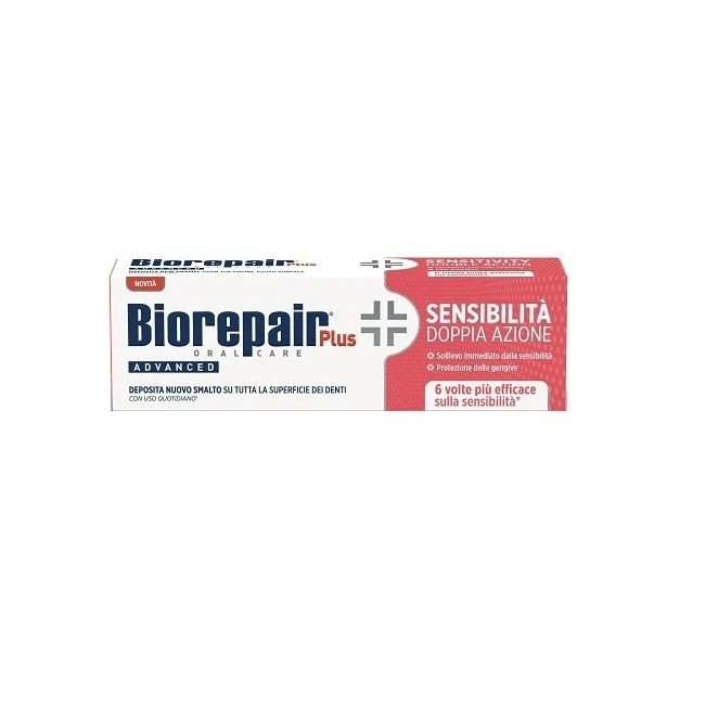 - Sensibilità Doppia Azione è la formula avanzata Biorepair Plus che aiuta a contrastare l'ipersensibilità e a proteggere le gengive.