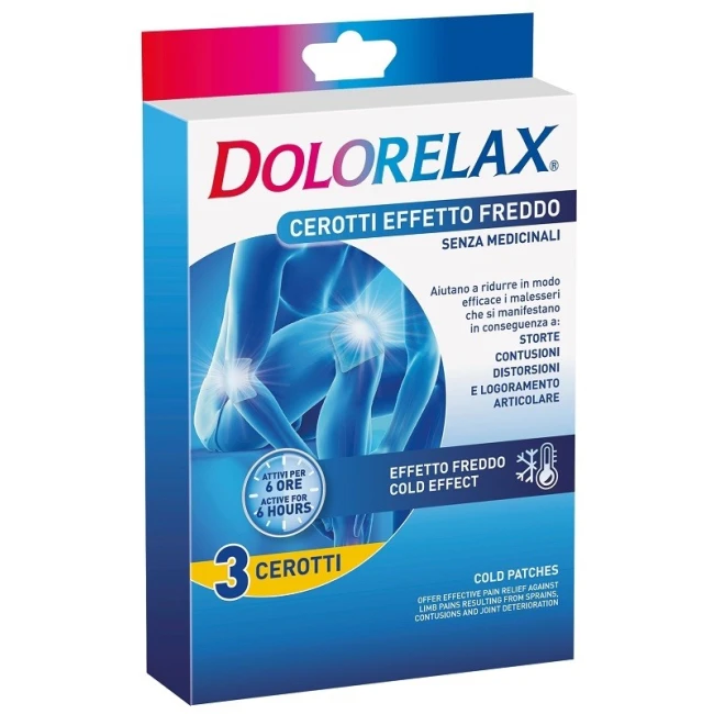 La sensazione di freddo, che deriva dall'applicazione del "Dolorelax cerotto freddo" sulla cute, aiuta a ridurre la sintomatologia dolorosa localizzata agli arti a seguito di distorsioni, contusioni, storte e logoramento articolare, tipico degli anziani. Attivi per 6 ore, svolgono un’azione benefica continuata, producendo sulla parte del corpo dolente un piacevole effetto raffreddante.