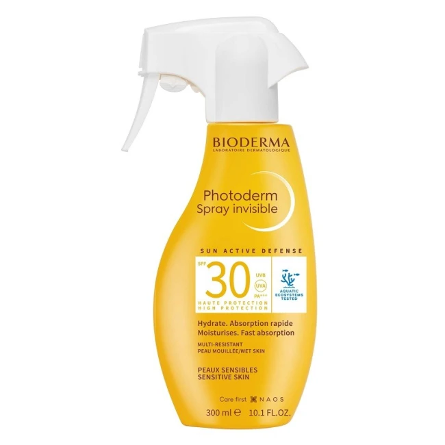 Spray invisibile. Alta protezione per pelle sensibile. Idrata. Assorbimento rapido.