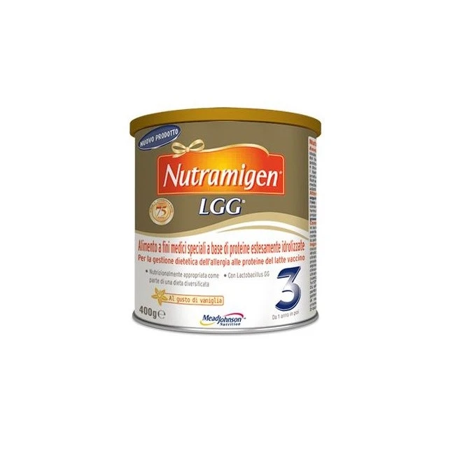 Alimento a fini medici speciali a base di caseine estesamente idrolizzate, indicato per la gestione dietetica dell’allergia alle proteine del latte vaccino nei bambini dal 1° anno di vita in poi. La formula è priva di lattosio e contiene il probiotico Lactobacillus rhamnosus GG (LGG).