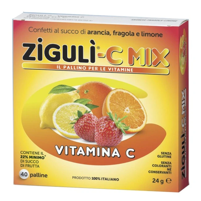 10 palline di Zigulì-C Mix apportano il 37,5% della razione giornaliera raccomandata (RDA).