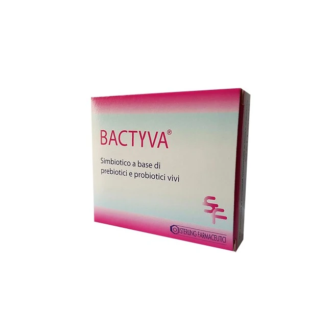 Simbiotico costituito da prebiotici e selezionati probiotici vivi che superano indenni il tratto gastro-intestinale. Bactyva permette una più rapida guarigione in caso di infezioni intestinali, riduce la sintomatologia associata all'uso di antibiotici, ha un effetto preventivo sulle infezioni ospedaliere, riduce il rischio di infezioni uro-genitali, è utile alle terapie di supporto ai trattamenti antitumorali.