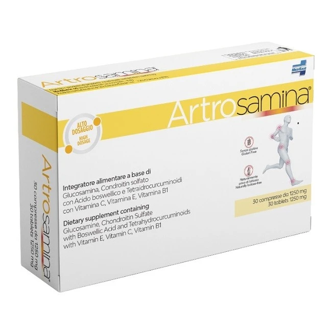 Integratore alimentare a base di glucosamina, condroitin solfato, acio boswellico e tetraidrocurcuminoidi con vitamina C, vitamina E e vitamina B1, utile per integrare l'alimentazione o soddisfare gli aumentati fabbisogni organici di tali nutrienti, che si possono verificare in talune situazioni carenziali. Boswellia risulta utile per la fisiologica funzionalità articolare, mentre la vitamina C contribuisce alla normale formazione del collagene per la normale funzionalità delle cartilagini. La vitamina E contribuisce alla protezione delle cellule dallo stress ossidativo.