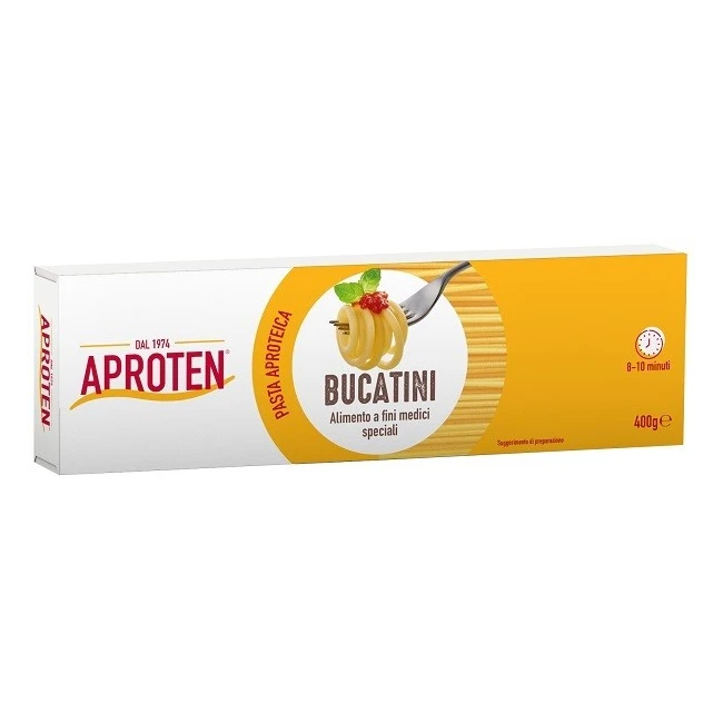 La Pasta aproteica della linea di prodotti APROTEN, è caratterizzata da: contenuto basso di proteine, sodio, fosforo e potassio che la rendono indicata per la gestione dietetica di insufficienze renali (nefropatie); contenuto basso di tirosina e fenilalanina che la rendono indicata per la gestione dietetica di aminoacidopatie metaboliche (fenilchetonuria, tirosinemia); contenuto basso di proteine che la rendono indicata per la gestione dietetica del morbo di Parkinson (in terapia con Levodopa). Per il paziente in terapia con Levodopa deve essere valutato il grado di eventuale disfagia e le eventuali problematiche di malnutrizione per difetto che possono insorgere in condizioni di restrizione proteica.