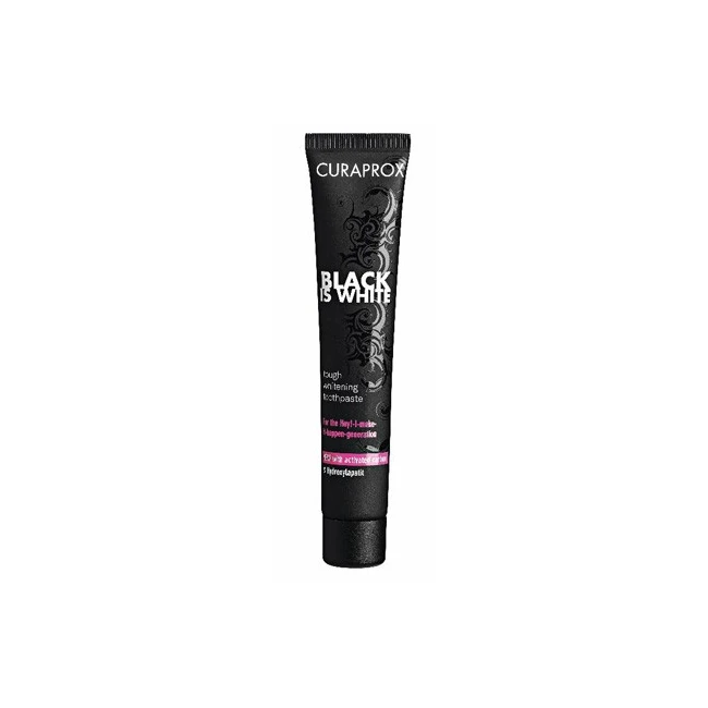 Il dentifricio sbiancante "Black Is White" rimuove le macchie con l'azione del carbone attivo, senza abrasivi né candeggianti.